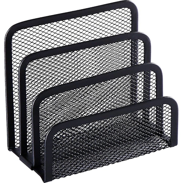Lorell Mesh Vertical Desktop File Sorter 4 Dividers 5.63" x 5.25" x 3.13" Steel Black