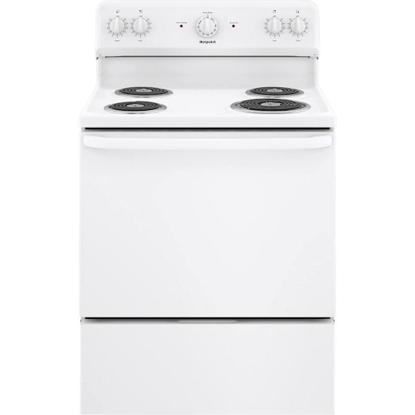 Hotpoint ENERGY STAR 30 In. 5.0 Cu. Ft. Coil Electric Freestanding Range, Manual Clean, White