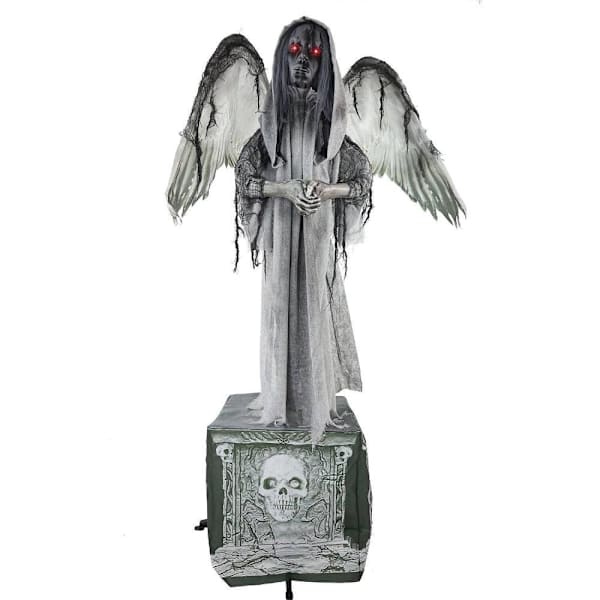 66-in. animatronic haunted angel statue for indoor or covered outdoor display