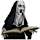 • Book clutched in her human-like hands glows red, illuminating the pages