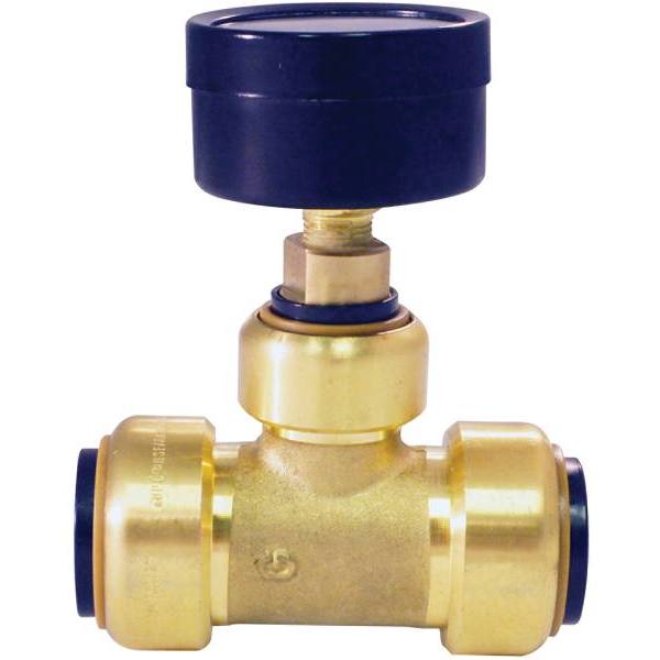 Tectite 3/4 In. X 3/4 In. X 1/2 In. Brass Push-To-Connect Tee W/ Pressure Gauge (0 To 200 Psi)