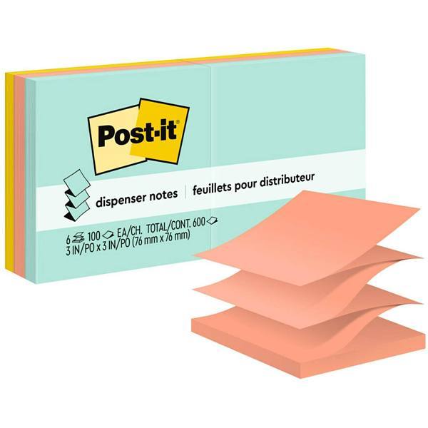 Post-It Dispenser Notes 3"X3" Assorted Colors Package Of 6