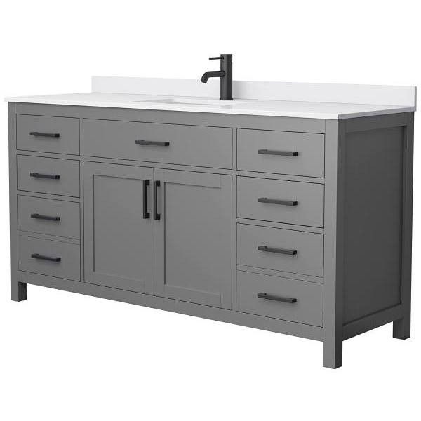 Backsplash comes in two pieces (Cut from one single piece due to high probability of breakage). Countertop with porcelain undermount square sink is drilled for single-hole faucet mounts